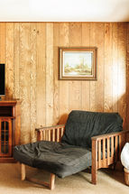 This cozy cabin, accommodating up to 16 guests, is perfect for your large family gathering! It features a kitchen stocked with all standard kitchen tools, 2 living spaces, a spacious porch for dining, a fire pit, BBQ, and a hot tub! It's retro vibe makes it one of our more beloved cabins.